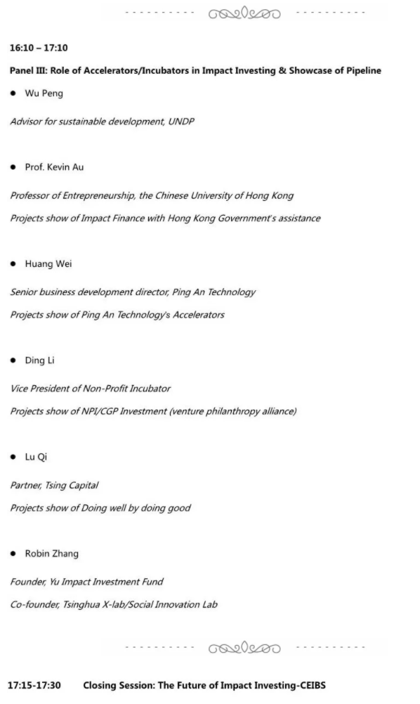 Participating The CEIBS Global Impact Investing Forum, during this session, you will acquire better understanding of: