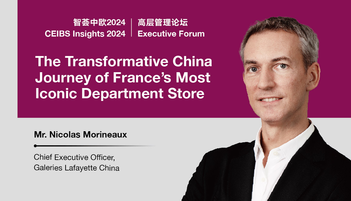 Join us for a CEIBS Executive Forum on September 12, 2024, with Mr. Nicolas Morineaux, Chief Executive Officer of Galeries Lafayette China, who will give a keynote speech on the theme of The Transformative China Journey of France’s Most Iconic Department Store.