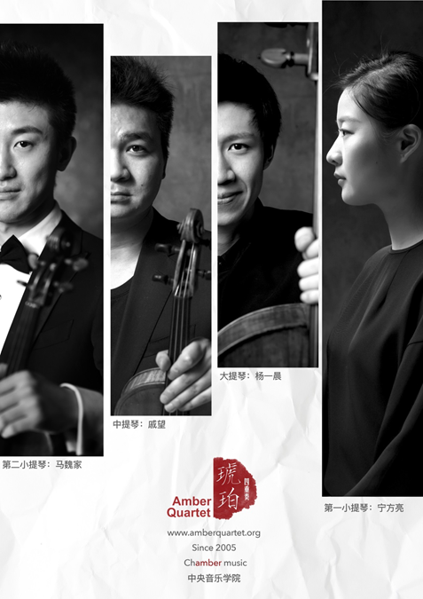 Amber Quartet founded in 2005 at the Central Conservatory of Music, the Amber Quartet, who represents the highest level of chamber music in China, has created history of Chinese chamber music for multiple time: the first Chinese chamber ensemble winning the highest award in an international chamber music competition, the first and only Chinese inheritor of the legendary Alban Berg Quartet, the first public-funded Chinese chamber ensemble entering the Instituto Internacional de Música de Cámara at the Escuela Superior de Musica Reina Sofia de Madrid and graduating with full credit, the first and only Chinese chamber ensemble invited by the renowned McGill International String Quartet Academy (MISQA), and the first professional string quartet listed in China National Art Foundation.