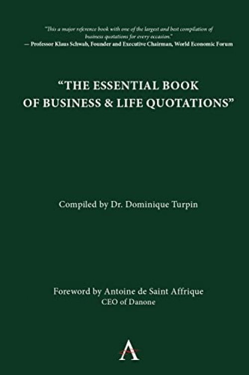 The Essential Book of Business and Life Quotations compiled by Dominique Turpin is an up-to-date book of quotations for executives, academics and anyone who wants to spice speeches and business presentations or simply reflect on some of the best things ever said on topics linked to business and management life in general. From “Aristotle” to “Mark Zuckerberg” and from “Action” to “Work”, this book is a formidable source of witty remarks and inspiration for all. Best of its kind and fully sourced, the book also covers modern topics such as “Bitcoins”, “Digitalization”, “Sustainability” or “Fake News” and includes a large number of quotations never published before.