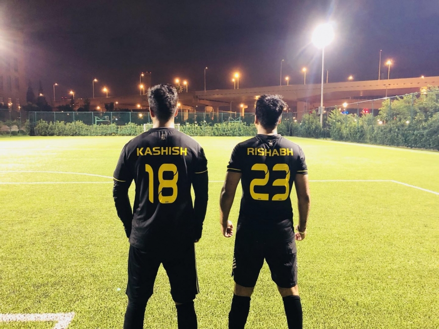 Kashish and Rishabh prepare for their first game for CEIBS football team