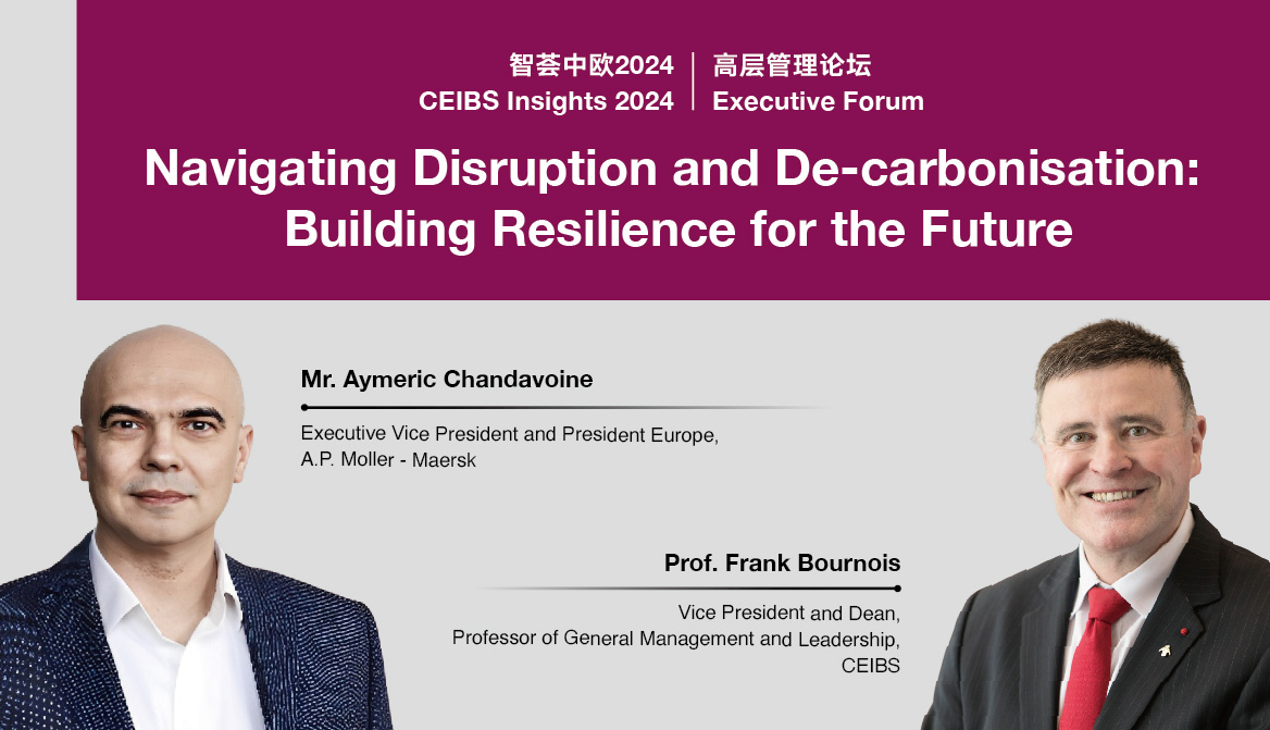 Join us for a CEIBS Executive Forum on April 9, 2024, with Mr. Aymeric Chandavoine, Executive Vice President and President Europe, A.P. Moller - Maersk, who will have a fireside chat with Professor Frank Bournois on Navigating Disruption and De-carbonisation: Building Resilience for the Future.