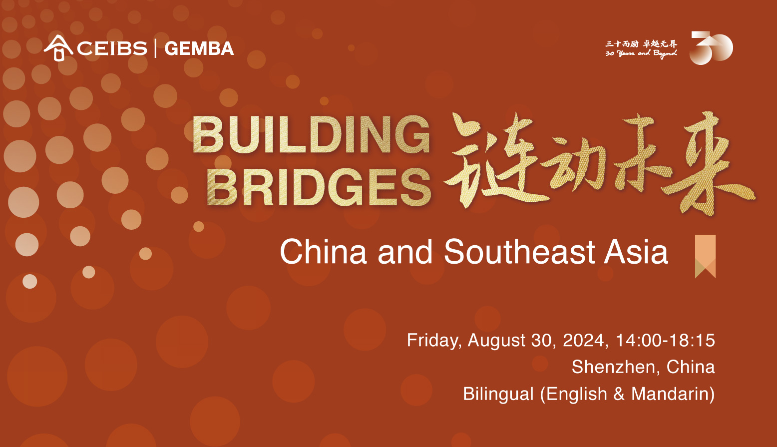 For these reasons and more, the series’ inaugural event will take place in Shenzhen, followed swiftly by one hosted in Singapore. Under the theme of "Building Bridges", attendees, CEIBS professors and our guest speakers and panelists will explore the following: