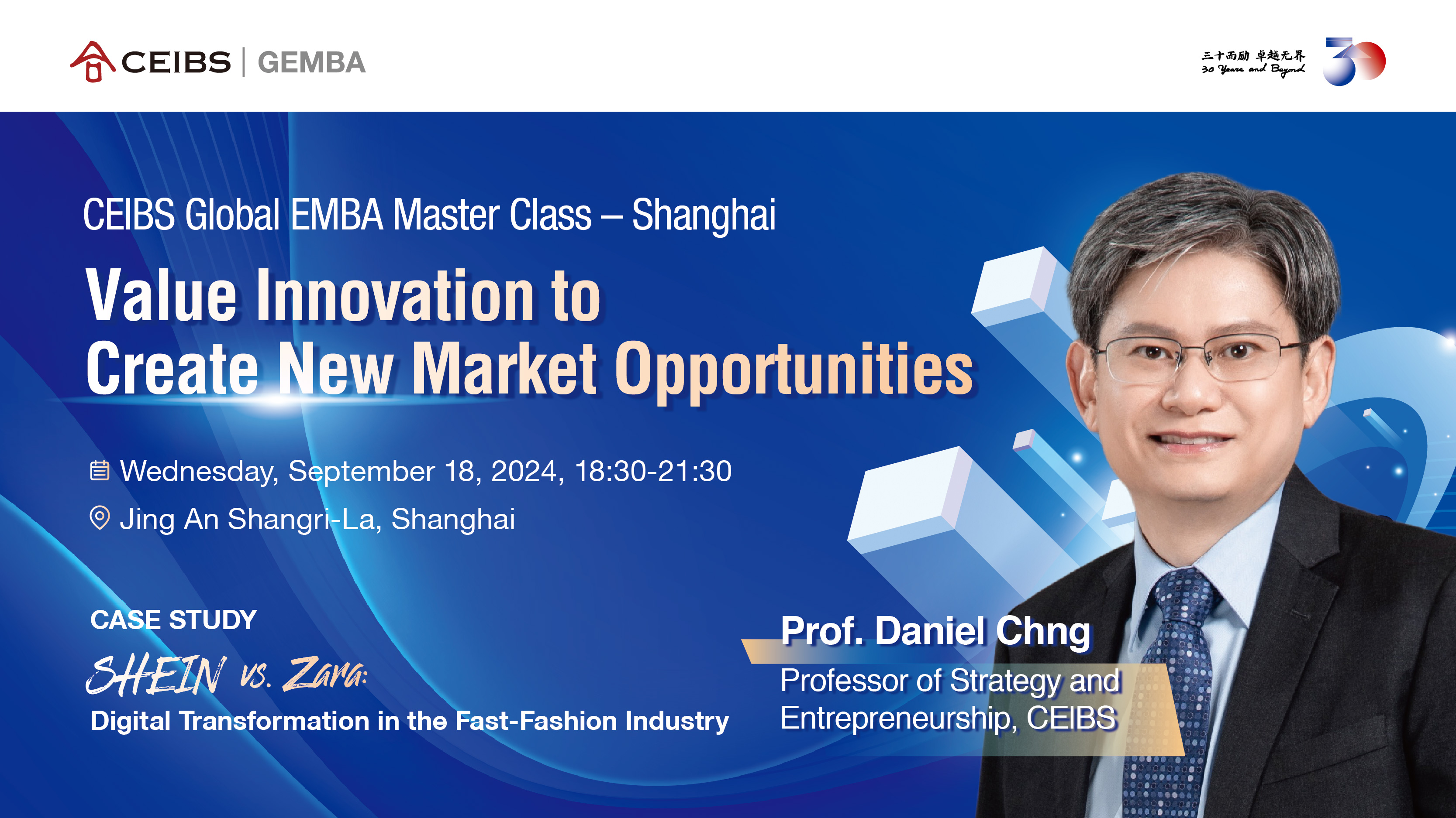 Commencing with an interactive case study seminar entitled, “SHEIN vs. Zara: Digital Transformation in the Fast-Fashion Industry” [HKU322-1009-1], Daniel Chng, Professor of Strategy and Entrepreneurship, CEIBS, will be discussing how, in today's competitive market, businesses need to create new, uncontested spaces rather than competing in crowded ones. This seminar on Blue Ocean Strategy will provide you with the tools to innovate value and unlock new market opportunities. Join us to explore SHEIN’s secrets and gain actionable insights for driving growth in your organization.