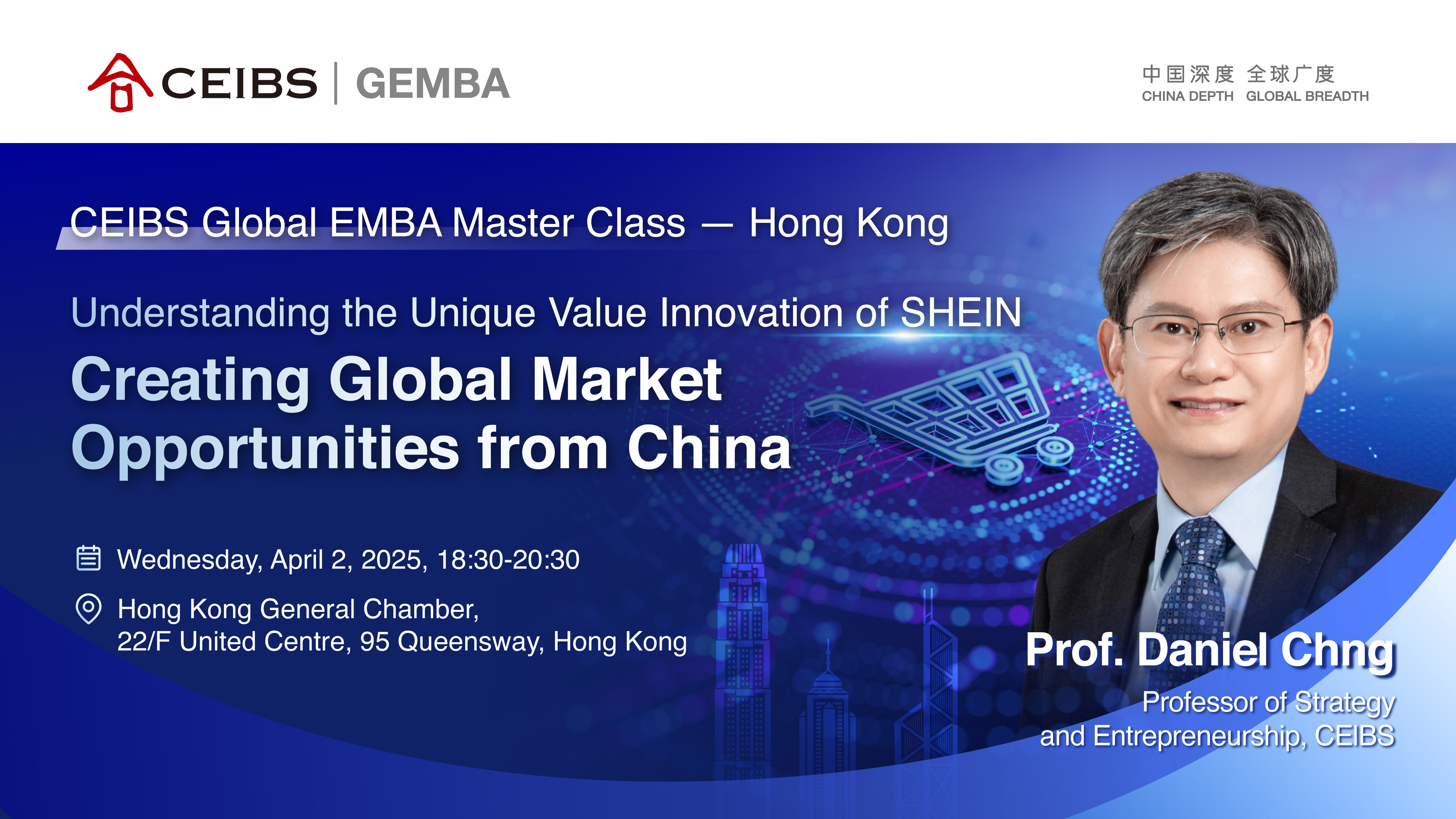 18:45-20:15       Interactive Case Study Lecture by Daniel Chng, Professor of Strategy and Entrepreneurship, CEIBS