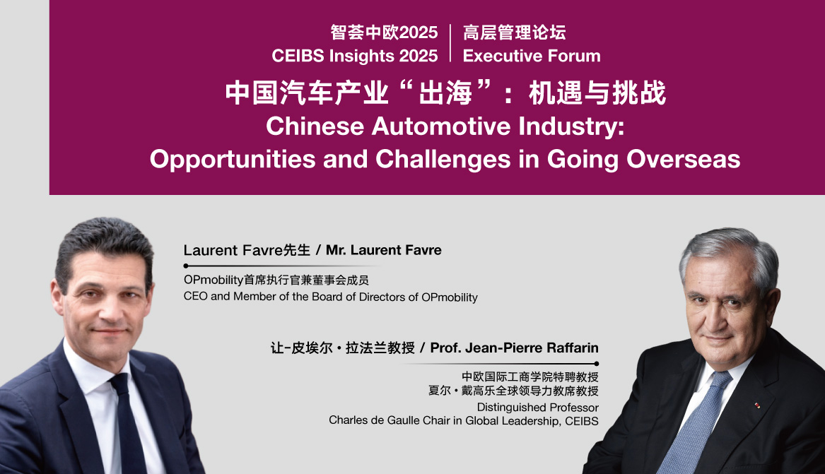 Join us for a CEIBS Executive Forum on March 20, 2025, with Mr. Laurent Favre, CEO and Member of the Board of Directors of OPmobility, who will give a keynote speech on the theme of “Chinese Automotive Industry: Opportunities and Challenges in Going Overseas”.