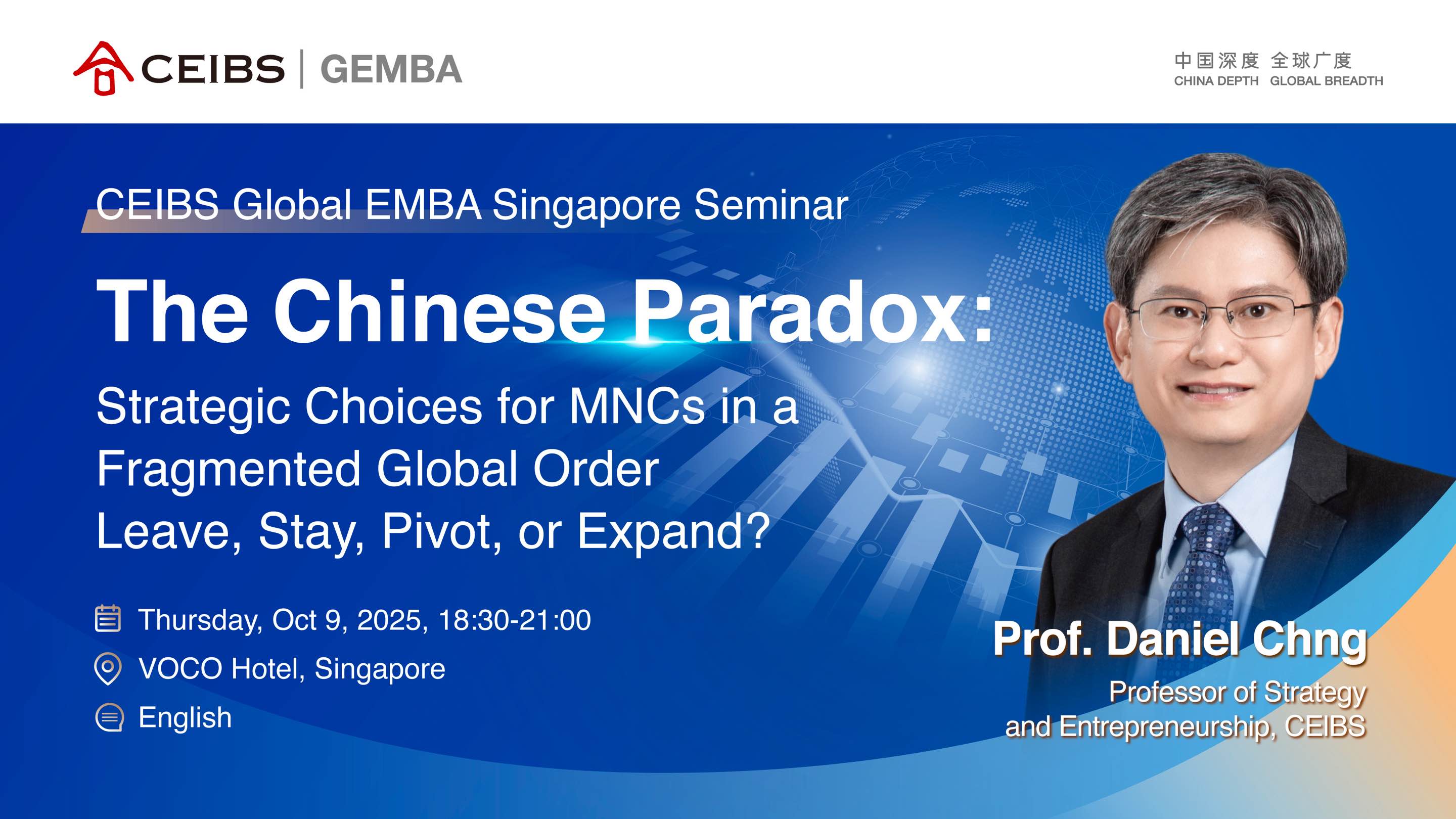 19:20-20:30 Lecture by Daniel Chng, Professor of Strategy and Entrepreneurship, CEIBS