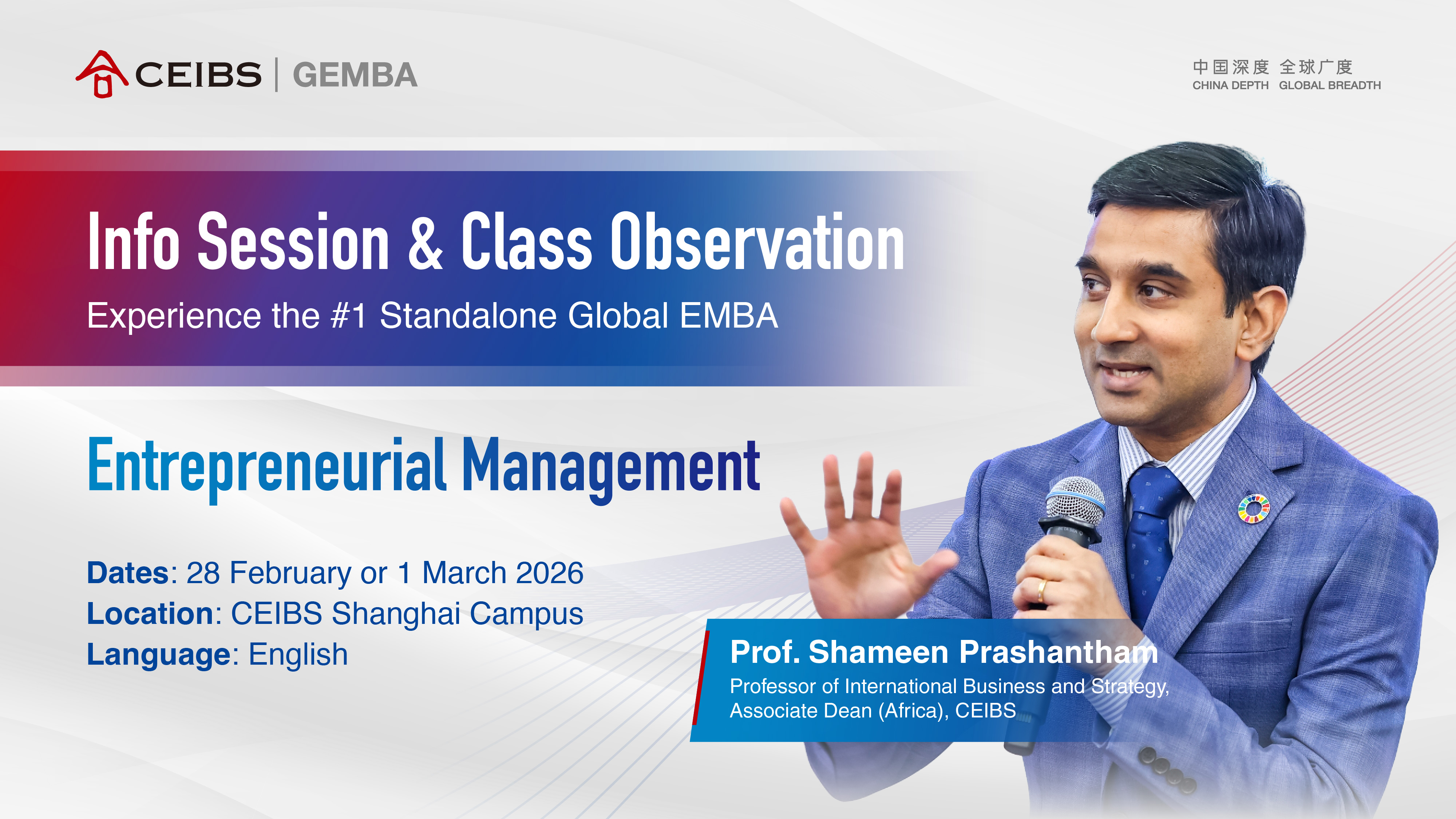 - Experience the CEIBS Global EMBA pedagogy in a real classroom setting