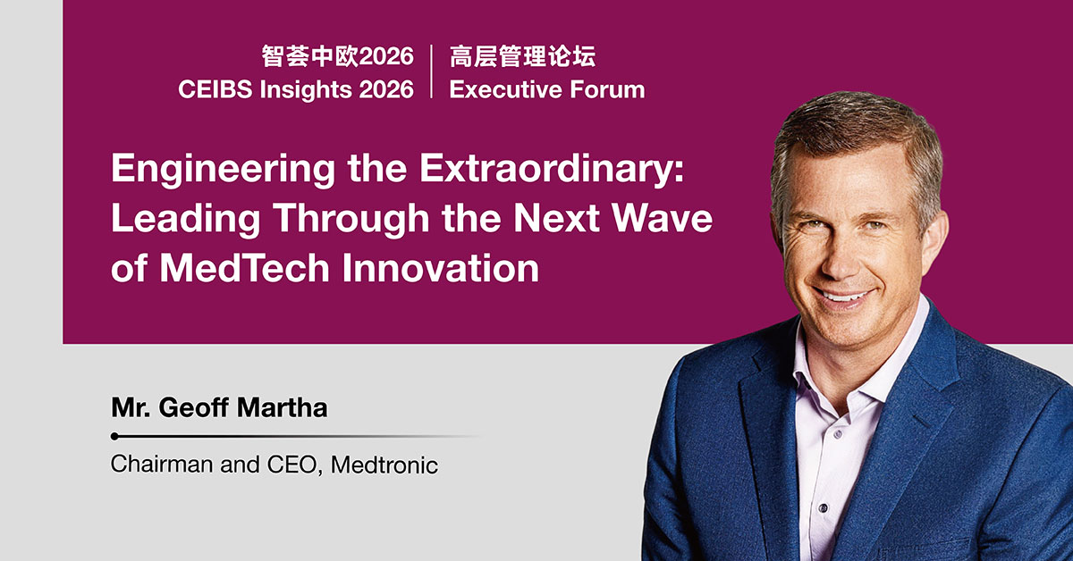 Join us for a CEIBS Executive Forum on March 24, 2026, with Mr. Geoff Martha, Chairman and CEO of Medtronic, who will give a keynote speech on the theme of Engineering the Extraordinary: Leading Through the Next Wave of MedTech Innovation.