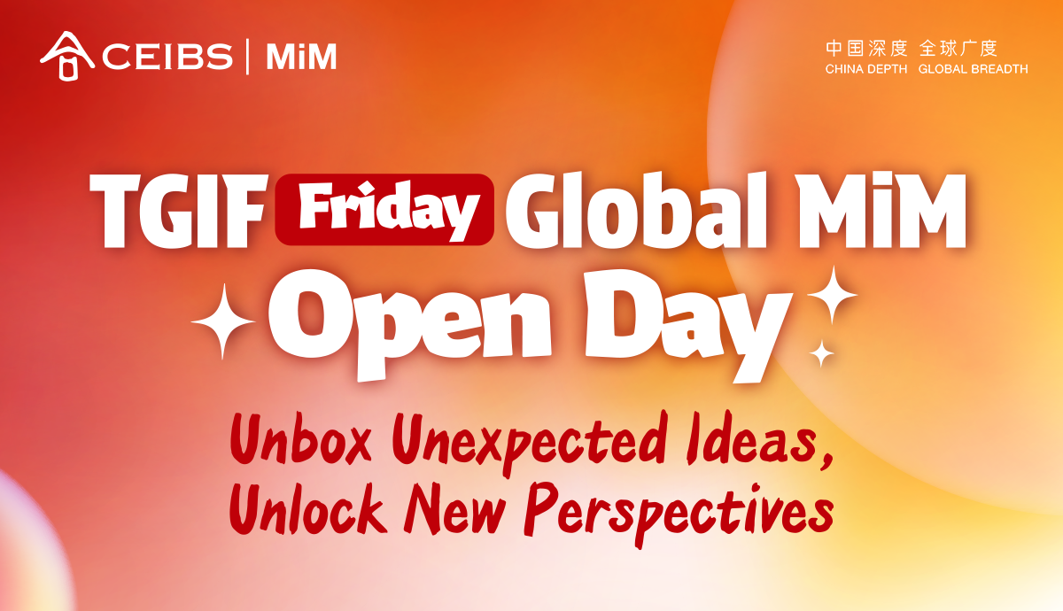 To answer these questions and more, the CEIBS Global MiM programme invites you to explore a unique event on a Friday afternoon.