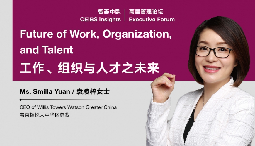 Please join us at our upcoming CEIBS Executive Forum on October 25, 2019 for a special talk by Ms. Smilla Yuan, CEO of Willis Towers Watson Greater China, on the Future of Work, Organization, and Talent.
