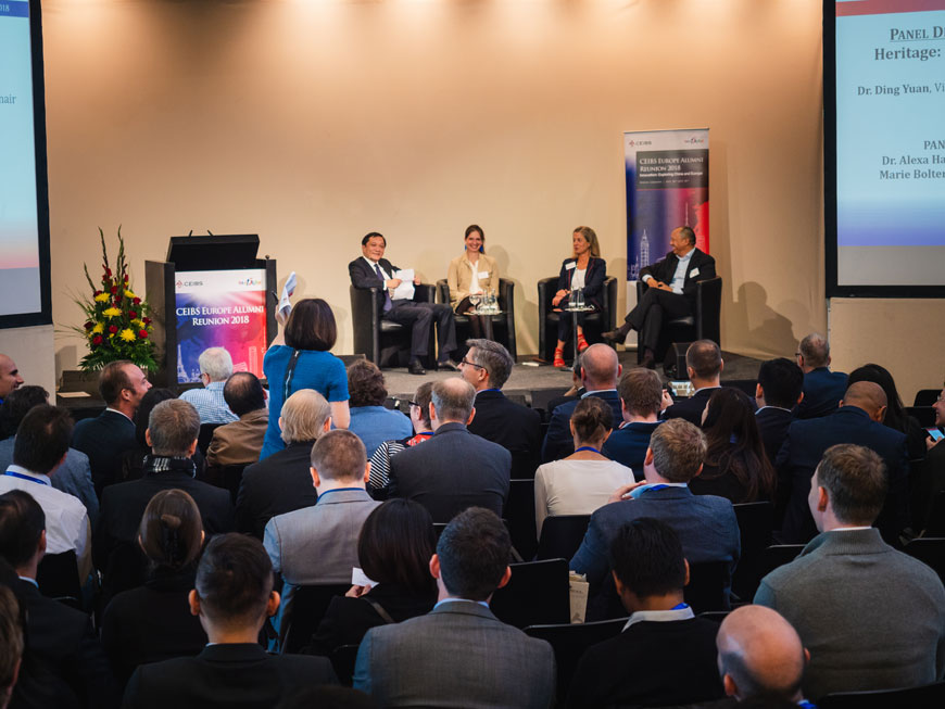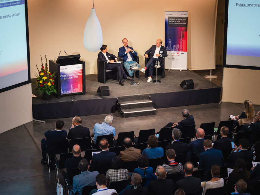 In the first of two panel discussions, serial tech entrepreneur Michael Brehm and venture capital expert Mathis Wilke, both CEIBS alumni, debated the tech start-up ecosystem in Europe and China. Xin Chen, CEO and Co-Founder of community platform HeroBakery and an expert in entrepreneurial China, moderated the session.