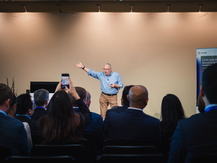 Prof. Jeff Sampler, CEIBS Professor of Management Practice was the talking point of the day. Flying in from Bangkok especially for the summit, he entertained participants with his energetic keynote speech on “Reinventing Strategy for the Digital World: Insights from China and Implications for Europe” discussing how the risks of innovation can be reduced through the usage of big data.