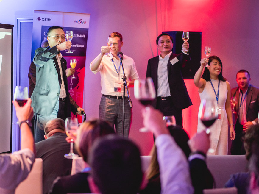 Another highlight was the closing speech by CEIBS brand-new President (European) Prof. Dipak Jain who some alumni were meeting for the very first time. Prof. Jain wrapped up the speeches by inviting CEIBS President Li Mingjun and CEIBS Vice President and Dean Ding Yuan to join him on stage in a toast to CEIBS alumni.