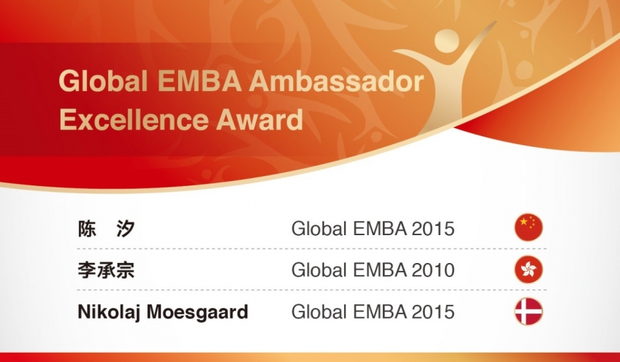 The Global EMBA Special Contribution Award is a new award category established last year. The two winners are classmates from the GEMBA 2018 class who organised multiple on-site activities to enrich the after-class learning experience of students and alumni.