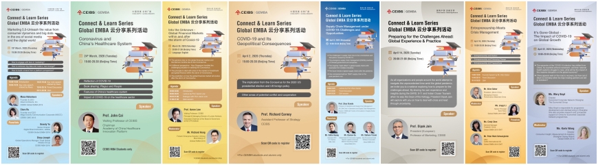 March and April is usually a time when the CEIBS Shanghai campus is full of excitement, when we welcome alumni from around the world for our landmark annual Global EMBA event – the Alumni Reunion Day. With public gatherings temporarily suspended, we have responded to the needs of our alumni to support their continuous learning with the Global EMBA Connect & Learn Series of online sharing activities. So far, these webinars have covered healthcare, supply chains, investment, geopolitics and economics. CEIBS professors and alumni have gathered online to discuss the development trends of the economy under the pandemic. The response from alumni has been fantastic, once again demonstrating their resilient passion for learning.