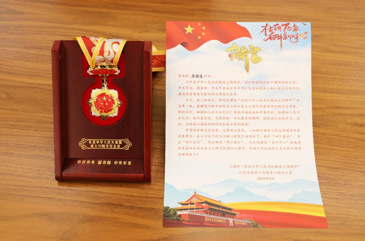 The medal is in commemoration of the 70th anniversary of the founding of the People’s Republic of China and was jointly issued by the Communist Party of China Central Committee, the State Council and the Central Military Commission of the People’s Republic of China. The National Commemorative Medal recognises recipients’ outstanding contributions to the People’s Republic of China and to the development of socialist modernisation.