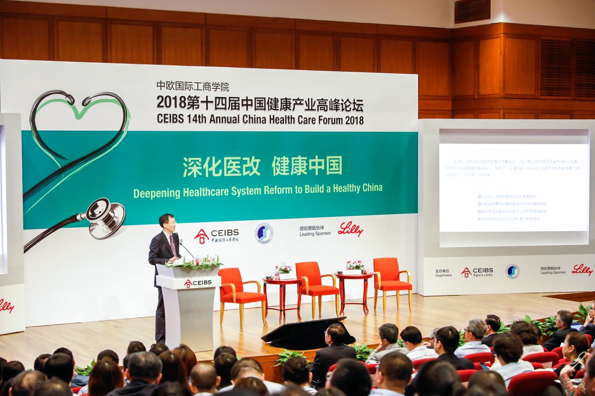 May 12, 2018. Shanghai – This year marks the 14th staging of the CEIBS Health Care Forum, and is also the first year the event is being held after the 19th National Congress of the CPC. The Congress had emphasised the importance of deepening reform of the public healthcare system to offer Chinese nationals affordable and easier access to medical services, by rolling out the Healthy China 2030 strategy. CEIBS Assistant President Dr. Snow Zhou who moderated a part of today’s event, highlighted the role CEIBS has been playing in contributing to China’s medical reform. “CEIBS assumes its social responsibility as a China knowledge powerhouse by building this platform for insight sharing, between policymakers, scholars and industry leaders, to accompany our country in the medical reform process,” he said.