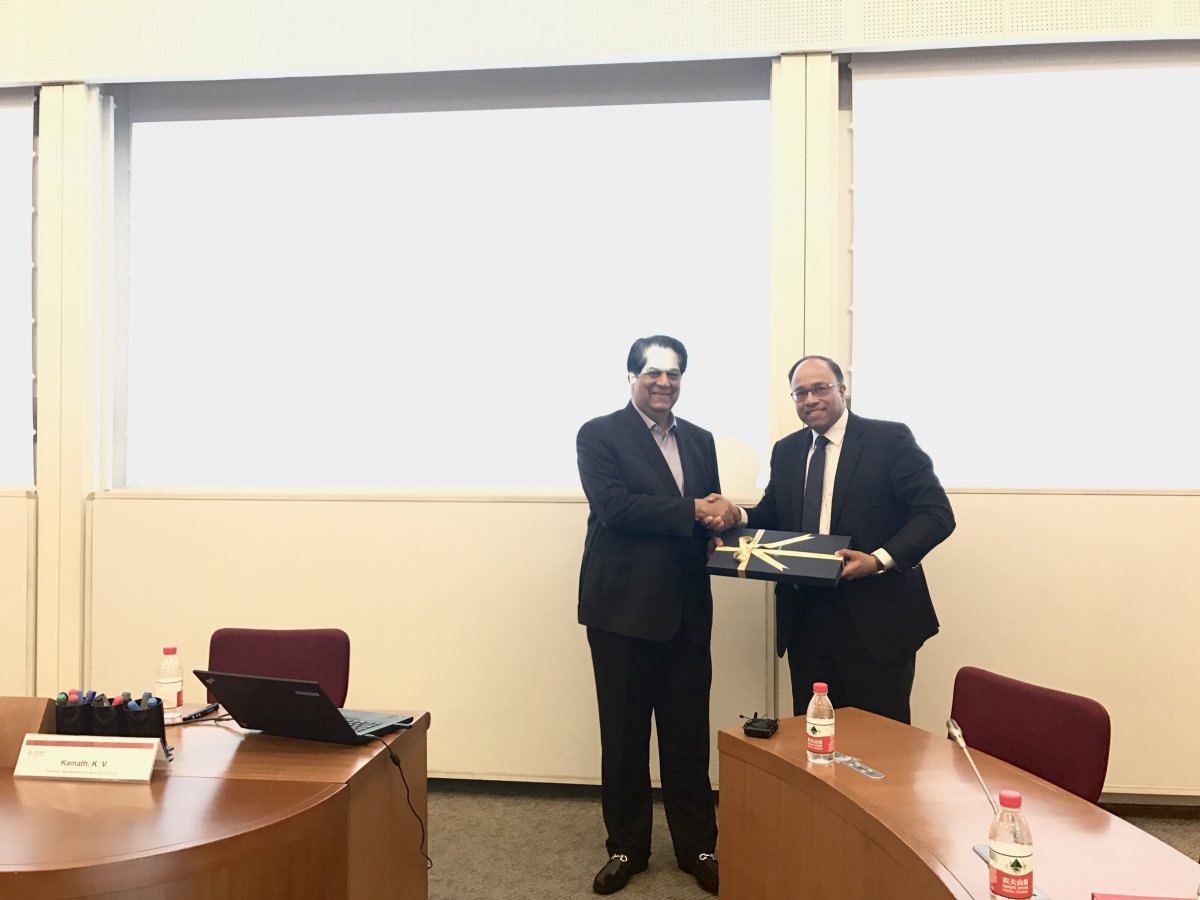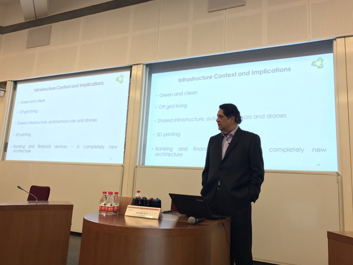 July 4, 2018 – The 4th Industrial Revolution is again reshaping the world economy, as did the three before that occurred respectively in the 18th, early and mid-20th centuries, bringing life-changing “disruptions” such as the steam engine, electricity and computers. Today, a variety of technologies are not just emerging but also converging to create a totally new ecosystem, blurring the lines between physical, digital and biological. Tonight, at an Executive Forum co-organised by CEIBS and the Indian Association, Mr. K. V. Kamath, President of the New Development Bank (informally referred to as the BRICS Development Bank) shared his insights on the topic “4th Industrial Revolution and Beyond”.