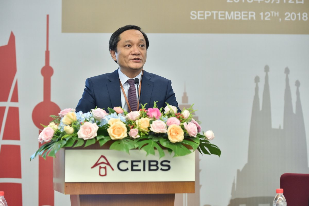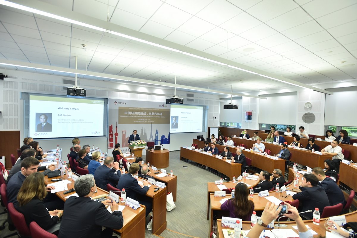 Prof. Sheng, who is also Executive Deputy Director of the highly-regarded think tank CLIIF, was speaking to members of the European Union’s diplomatic community in Shanghai and business executives during this evening’s forum on Sino-EU Cooperation. The venue was CEIBS Shanghai Campus. The event is part of CEIBS’ efforts, on the 15th anniversary of the China-EU Comprehensive Strategic Partnership, to fulfil its role as a platform to further enhance China-EU communication and cooperation, both in business and culture, along with providing a window of China's reform and opening up in the education sector. As CEIBS Vice President & Dean Professor Ding Yuan explained, today's event was a way to share CEIBS' wealth of knowledge with the European diplomatic and business communities in China.