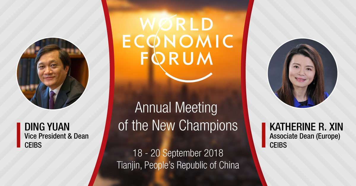 September 14, 2018. Shanghai – CEIBS Vice President and Dean Professor Ding Yuan and CEIBS Associate Dean (Europe) Professor Katherine Xin will be among the more than 2,000 participants from 111 countries participating in the World Economic Forum’s Annual Meeting of the New Champions held this year in Tianjin, China. The summit, unofficially referred to as ‘Summer Davos’, will take place on September 18-20 and will cover areas such as innovation, science & technology, and promoting entrepreneurship in the global public interest. The event also seeks to address some of the current economic, political, societal, and environmental challenges relating to the Fourth Industrial Revolution.