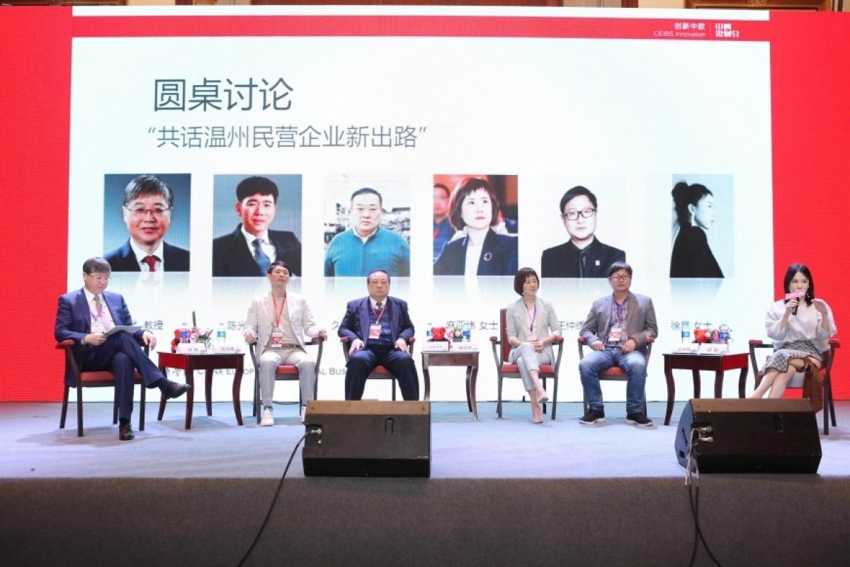 Finally, Prof. Xu Bin hosted a roundtable discussion on The New Way Out for Wenzhou Private Enterprises, during which Zhejiang Dusto Shoes Co., Ltd. Chairman Chen Guangmin, Hangzhou Hisazumi Technology Industry Co., Ltd. Chairman Saburo Hisazumi, Shinyway International Founder and Chairman Ma Yawei (CEIBS EMBA 2004), 365 Investment Group Chairman Wang Zhonghui (CEIBS EMBA 2012), and Kris Xu fashion brand Founder and Chief Designer Xu Kun (CEIBS EMBA 2008) shared various insights.