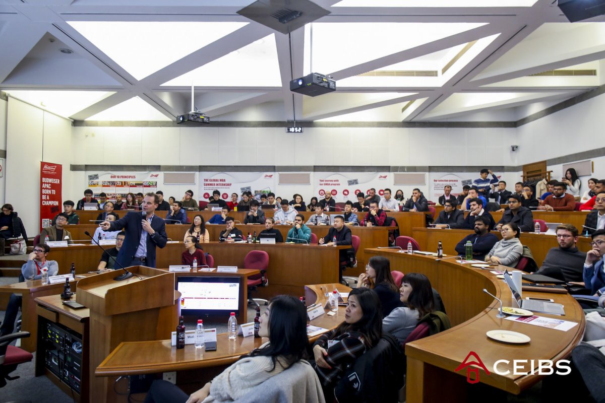 November 18, 2019 – CEIBS’ Shanghai campus played host to nearly 150 guests this evening for a special CEIBS Executive Forum talk by Jan Craps, CEO and Executive Director Budweiser APAC & President APAC Zone AB InBev at Anheuser-Busch InBev, on the theme of Business through Digitalisation. Mr. Craps’ presentation examined four pillars related to digitization – consumers, customers, supply chain, and operations – and how, as one of the world’s largest consumer packaged goods (CPG) companies, AB InBev is leveraging new technologies to better drive business growth in China and Asia.