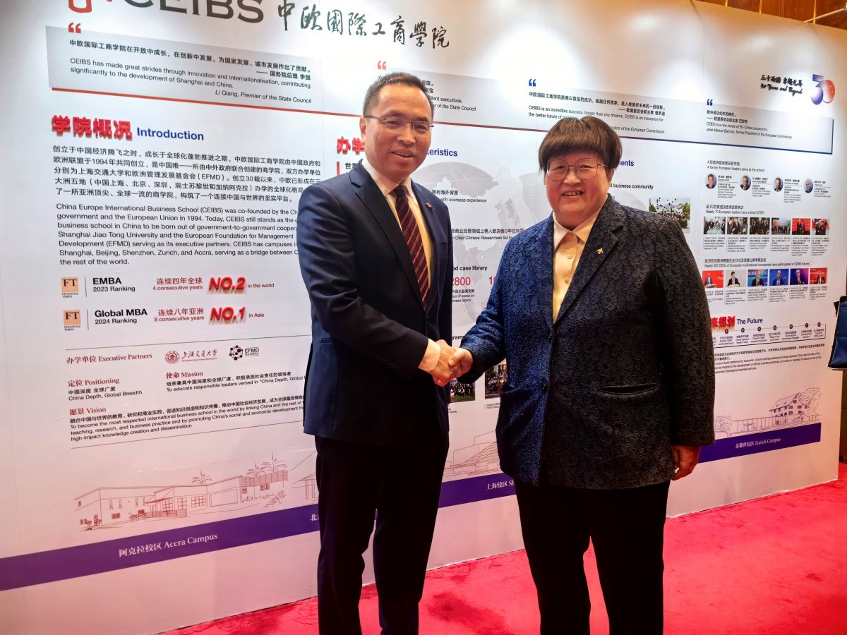 March 29, 2024. Beijing – CEIBS was represented at the 6th EU-China High-Level People-to-People Dialogue (HLPPD) on education, culture, youth and sport in Beijing today with an educational exhibition highlighting the school’s remarkable achievements in promoting China-EU cooperation and exchanges in economy, trade, culture and education over the past 30 years.
