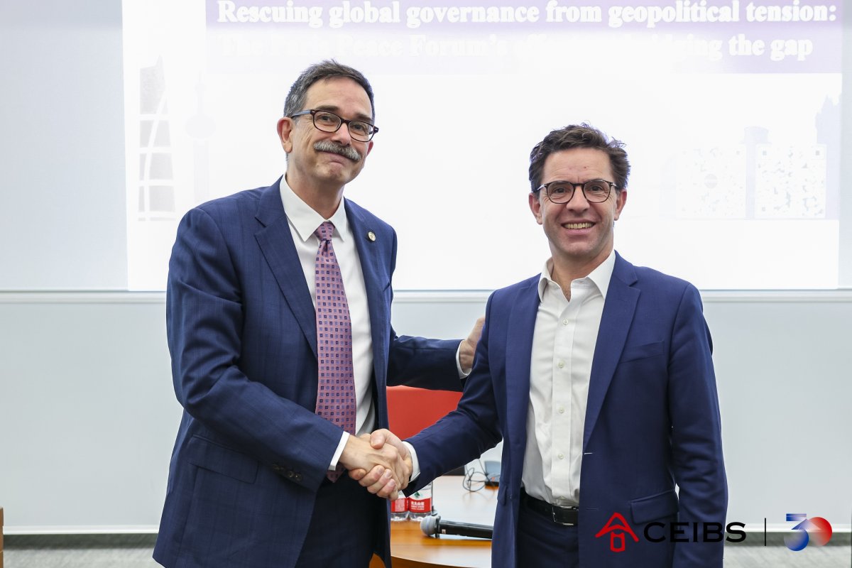Addressing these pressing issues, Founder and Director General of the Paris Peace Forum Justin Vaïsse delivered a compelling speech entitled “Rescuing global governance from geopolitical tension: The Paris Peace Forum’s efforts at bridging the gap” at an Executive Forum on the CEIBS Shanghai campus today.