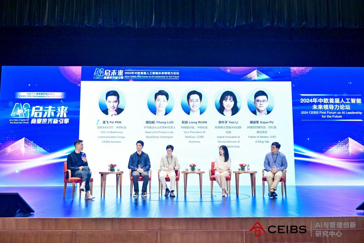 The forum also featured an engaging roundtable discussion moderated by CEO of BlueFocus Communication Group and CEIBS alumnus Fei Pan, who invited to the stage ByteDance Volcengine Yihang Luo, Vice President of NetEase and CEIBS alumnus Liang Ruan, and Digital Innovation & Service Director for L'Oréal North Asia Yezi Li to exchange ideas on Productivity and AI Transformation.