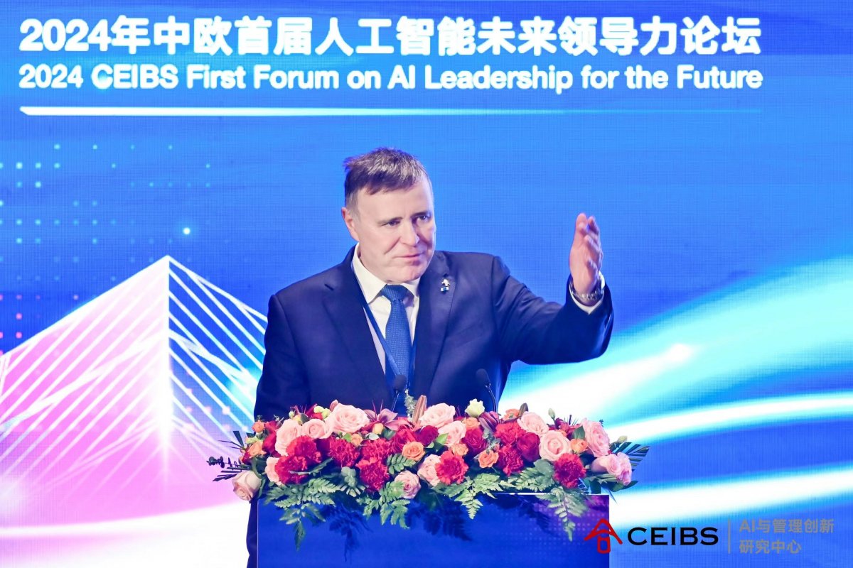 CEIBS Vice President and Dean Frank Bournois also delivered a keynote speech where he highlighted the impact of AI on business management, especially the ways in which AI can transform pedagogy and change the way we deliver knowledge.