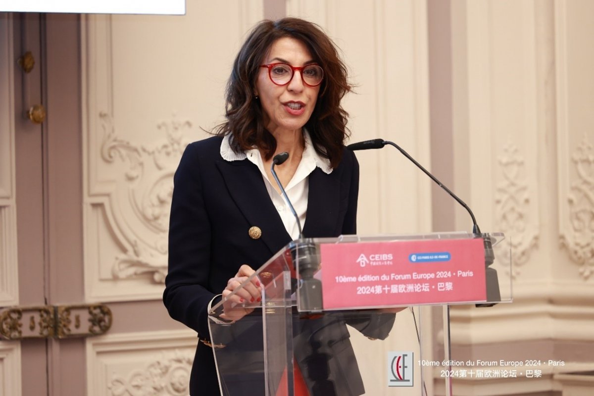 Mrs. Soumia Malinbaum, President of the Paris Chamber of Commerce and Industry and Vice President of the Paris Region Chamber of Commerce and Industry, then delivered a welcoming speech. Noting that the event marked ten years of the CEIBS Europe Forum, and that recent meetings between French President Emannuel Macron and Chinese President Xi Jinping had given new momentum to the development of bilateral relations between the two countries, she described how the Chinese market has changed in recent years, with Chinese companies not only succeeding in their home market but also actively seeking opportunity overseas, and how France’s favourable entrepreneurial ecosystem and market environment make it an ideal destination for many such Chinese enterprises.