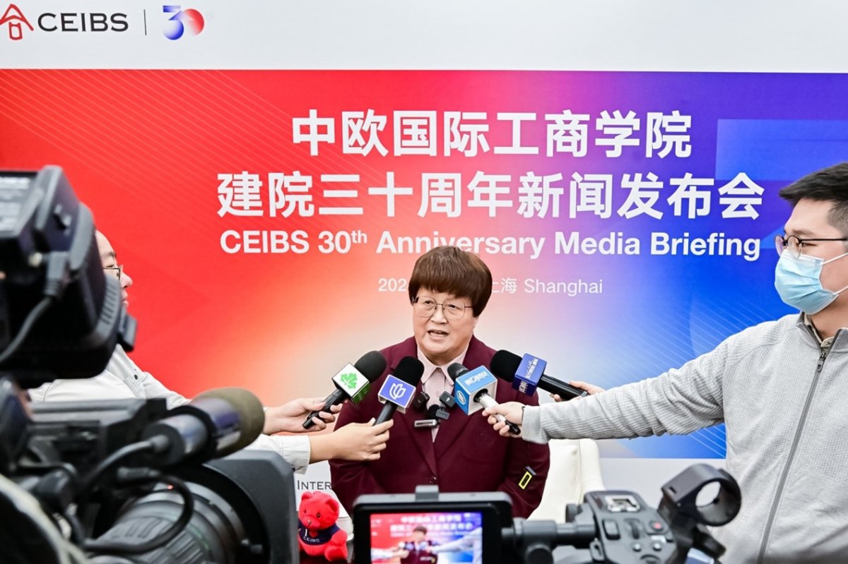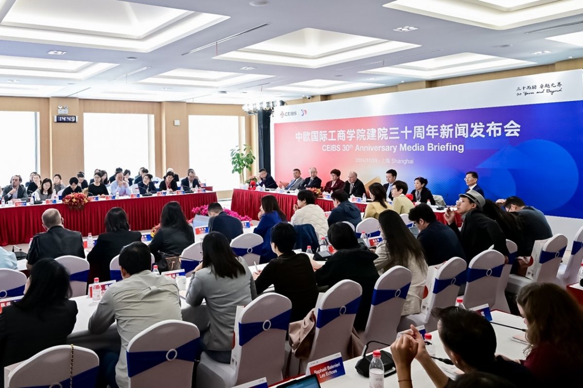 October 29, 2024. Shanghai – A media briefing celebrating the 30th anniversary of CEIBS was held today on the CEIBS Shanghai campus, with nearly 50 leading media outlets from China and around the world in attendance, including Poets & Quants, Reuters, Les Echos, Handelsblatt, South China Morning Post, Shanghai Daily, China Daily, Xinhua News Agency, People's Daily, Economic Observer, and more.