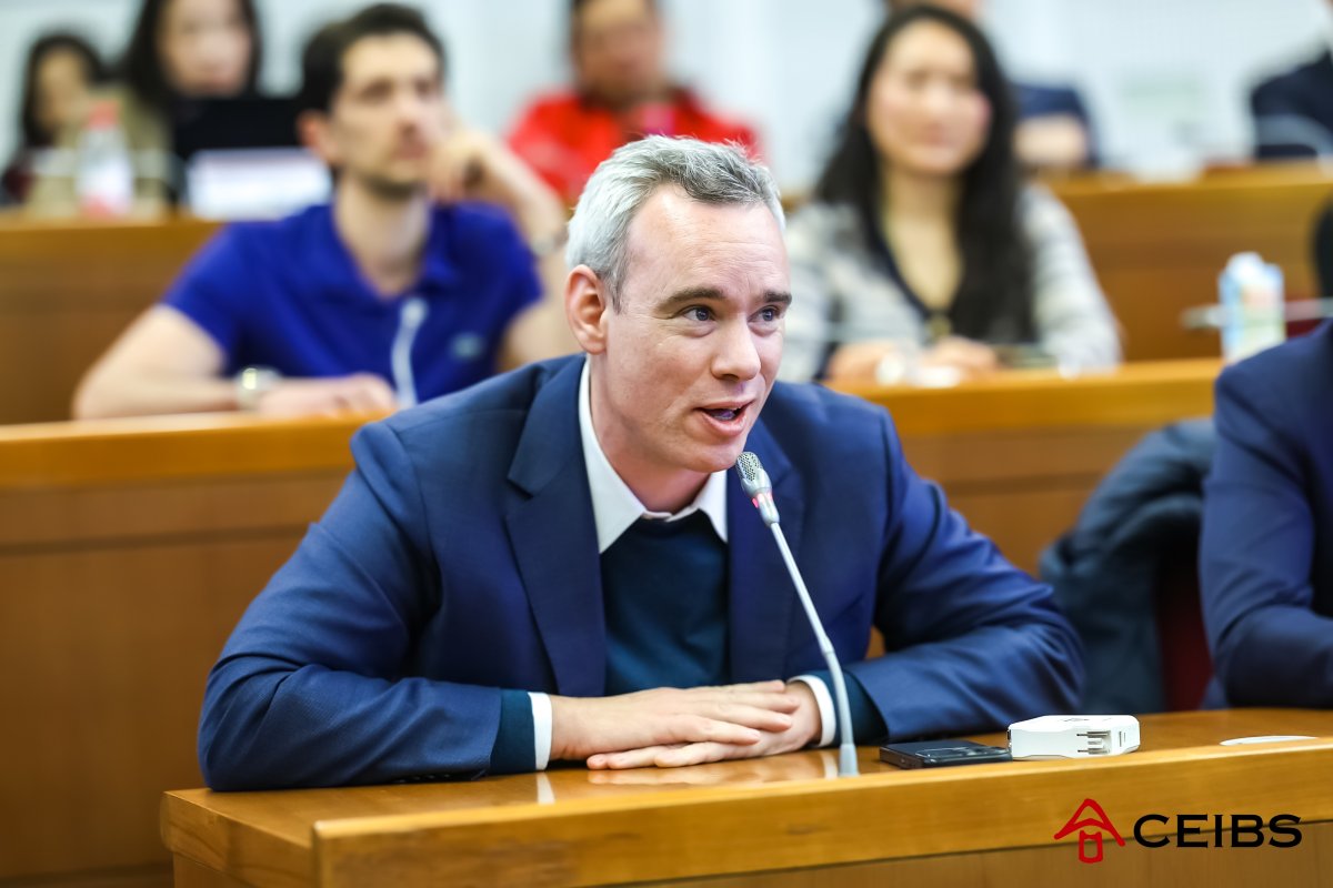 March 20, 2025. Shanghai – As China’s automotive industry continues its rapid ascent on the global stage, CEIBS Shanghai campus today welcomed CEO and Member of the Board of Directors of OPmobility Laurent Favre for an insightful talk on “Chinese Automotive Industry: Opportunities and Challenges in Going Overseas.” The event began with a welcome address by CEIBS Vice President and Dean Frank Bournois and notably featured opening remarks delivered by CEIBS Distinguished Professor and former Prime Minister of France Jean-Pierre Raffarin.