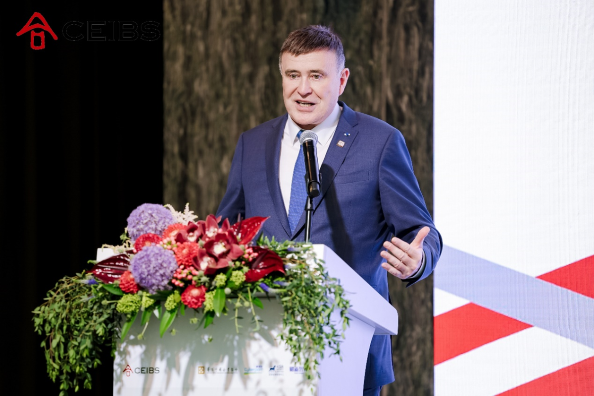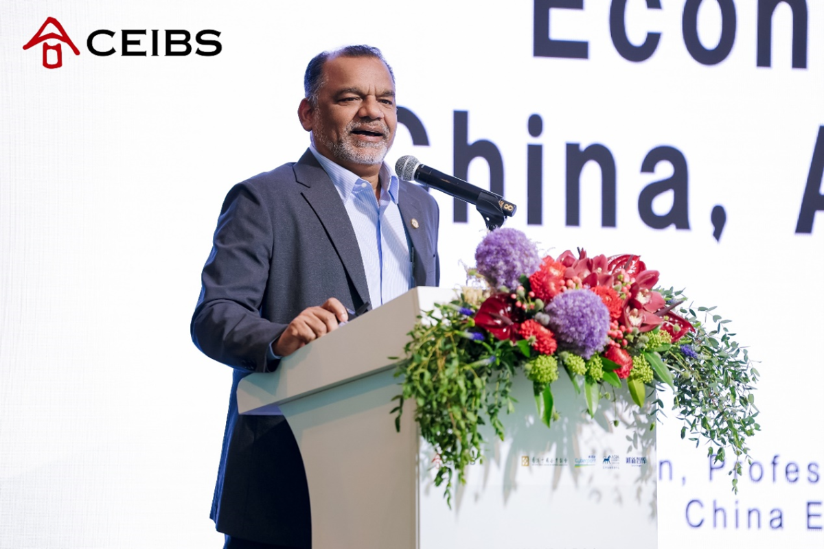 Professor Bala Ramasamy, CEIBS Associate Dean, Professor of Economics, and Director of the Global EMBA (GEMBA) Programme, then delivered a keynote speech titled "Economic Outlook: China, Asia & the World". He began by emphasising the now firmly established presence of global uncertainty, drawing on sources including the Stanford Institute for Economic Policy Research’s World Uncertainty Index and an analysis of Financial Times reporting over time, ultimately asserting that “the only thing certain in this world is uncertainty, and as managers, we need to learn to live with this.” Prof. Ramsamy built on this theme by helpfully outlining facets of the future that we cannot know – including who the next president of the US will be in 2029, the outcome of US midterm elections in 2027, developments in the international relations environment, whether developing nations will “choose” the US or China, and the development of the US economy – along with developments that can confidently be predicted – namely the continuation in China of leadership by the Communist Party of China, the continuation of the country’s government and economic system, a continuation of government involvement in the Chinese economy through state-owned enterprises, China's continued success in innovation and place at the forefront of cutting-edge technology, growth in Chinese domestic consumption, and the continuing development of China’s domestic market providing a daunting challenge to multinationals attempting to enter the country.