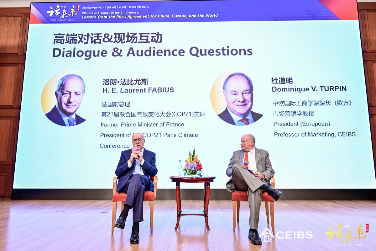 Speaking to an audience that included CEIBS faculty, alumni, and students, Mr. Fabius reflected on his experience as architect of the Paris Agreement and shared his insights into the ongoing global struggle to balance climate ambition with geopolitical realities.