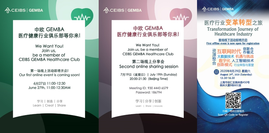 Founded in April of this year, the CGEHC is a student organisation independently operated by CEIBS Global EMBA (GEMBA) alumni. As a part of the GEMBA alumni community, the CGEHC is committed to building a lifelong learning and sharing platform to enable its members to stay on top of cutting-edge theories and practices in the healthcare industry, communicate effectively with each other and explore industry-specific issues.