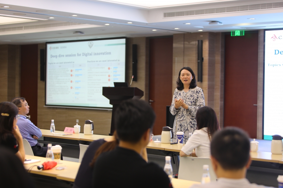 Next, Hou Yi (Global EMBA 2017), Associate Director of Digital Solutions and Service at Eli Lilly, shared her personal experience in digital innovation and transformation in the pharmaceutical industry. According to her, the digital transformation journey evolves along three stages: