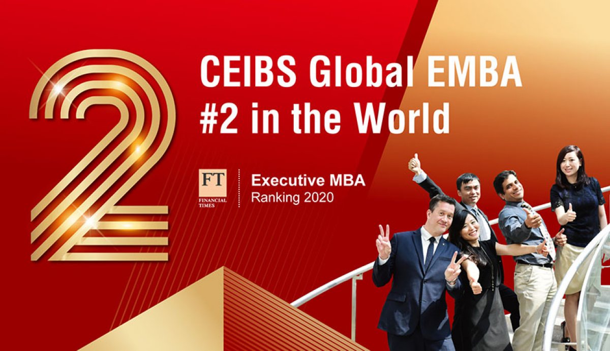 October 26, 2020. Shanghai – CEIBS has soared to #2 in the Financial Times’ 2020 ranking of the world’s top 100 EMBA programmes. This is the third consecutive year CEIBS’ Global EMBA has appeared in the top five and is the highest ever ranking for a stand-alone EMBA programme in Asia. In January, the school’s full-time MBA programme was also ranked #5 globally and #1 in Asia for the second consecutive year. The ranking further cements CEIBS’ position as one of the top business schools in the world.