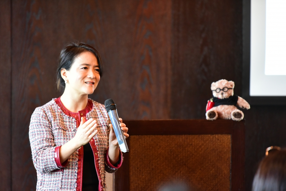 CEIBS Global EMBA Director Isa Luo giving a welcome speech to alumni.▲