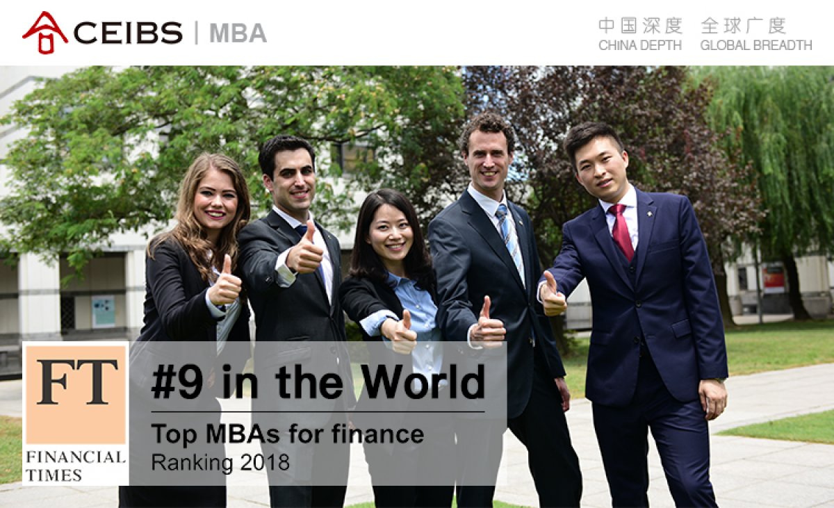 May 7, 2018. Shanghai – The CEIBS MBA has moved up 14 spots to #9 in the Financial Times ranking of the world’s top 50 MBAs for finance. Breaking into the top 10 today also secures CEIBS MBA’s place as Asia’s #1 MBA for Finance. The top 10 are: Stanford, Wharton, Chicago Booth, Harvard, New York Stern, MIT Sloan, INSEAD, Cambridge Judge, CEIBS and Columbia.