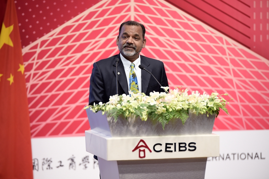 CEIBS Vice President and Co-Dean Prof. Zhang Weijiong opened the ceremony with a warm welcome and in the process offered some valuable advice about life. “Among three people, there should be one who can be my teacher,” he said, quoting Confucius. In addition, Prof. Zhang encouraged the students to always be curious – to seek out the unfamiliar and to never stop learning.