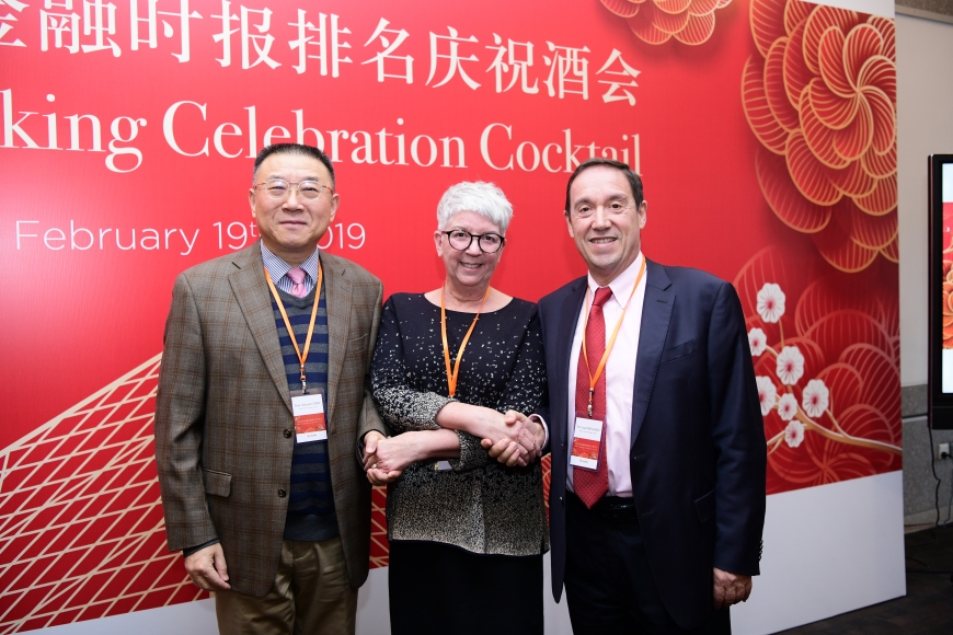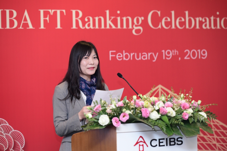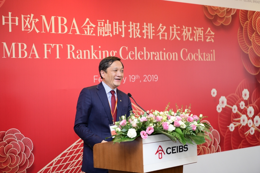 February 19, 2019. Shanghai – Nearly 100 CEIBS MBA students, alumni, recruiters, mentors, faculty, and staff came together today to celebrate the school’s record high #5 position in the Financial Times’ annual ranking of the world’s top 100 full-time MBA programmes. Leading the celebration were CEIBS President (European) Dipak Jain, Vice President and Dean Ding Yuan, Vice President and Co-Dean Zhang Weijiong, and Associate Dean and MBA Programme Director Juan Fernandez.
