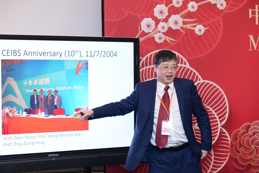 Associate Dean (Research), Professor of Economics and Finance, and winner of four teaching excellence awards, Dr. Xu Bin shared photos and memories from his own 15 year journey with the CEIBS. He also expressed his confidence in the school’s future given its leadership, strategic direction, and the strength of China’s economy.