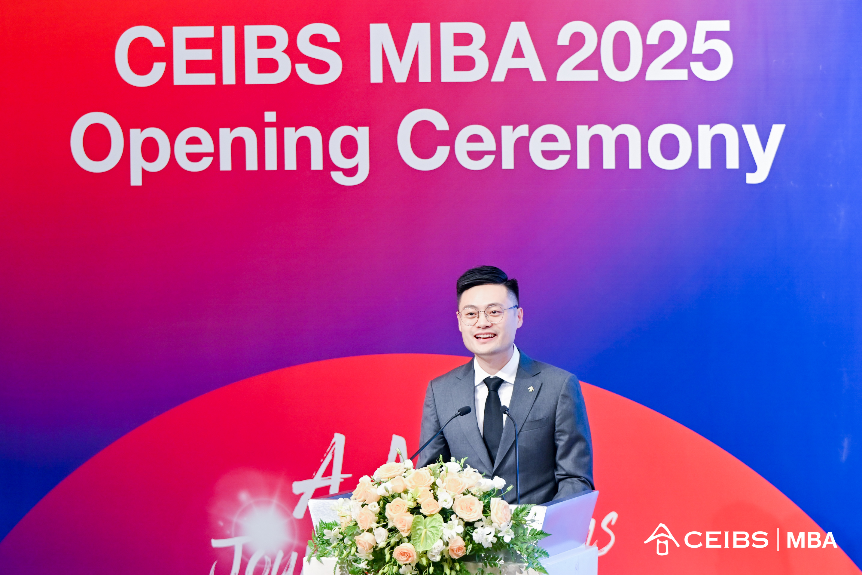 In keeping with school tradition, a student from the previous class was also welcomed to share advice for the new students. MBA 2024's Chenxi Qu shared insightful reflections on his own journey at CEIBS, highlighting the importance of active engagement, human connections, and resourceful planning.