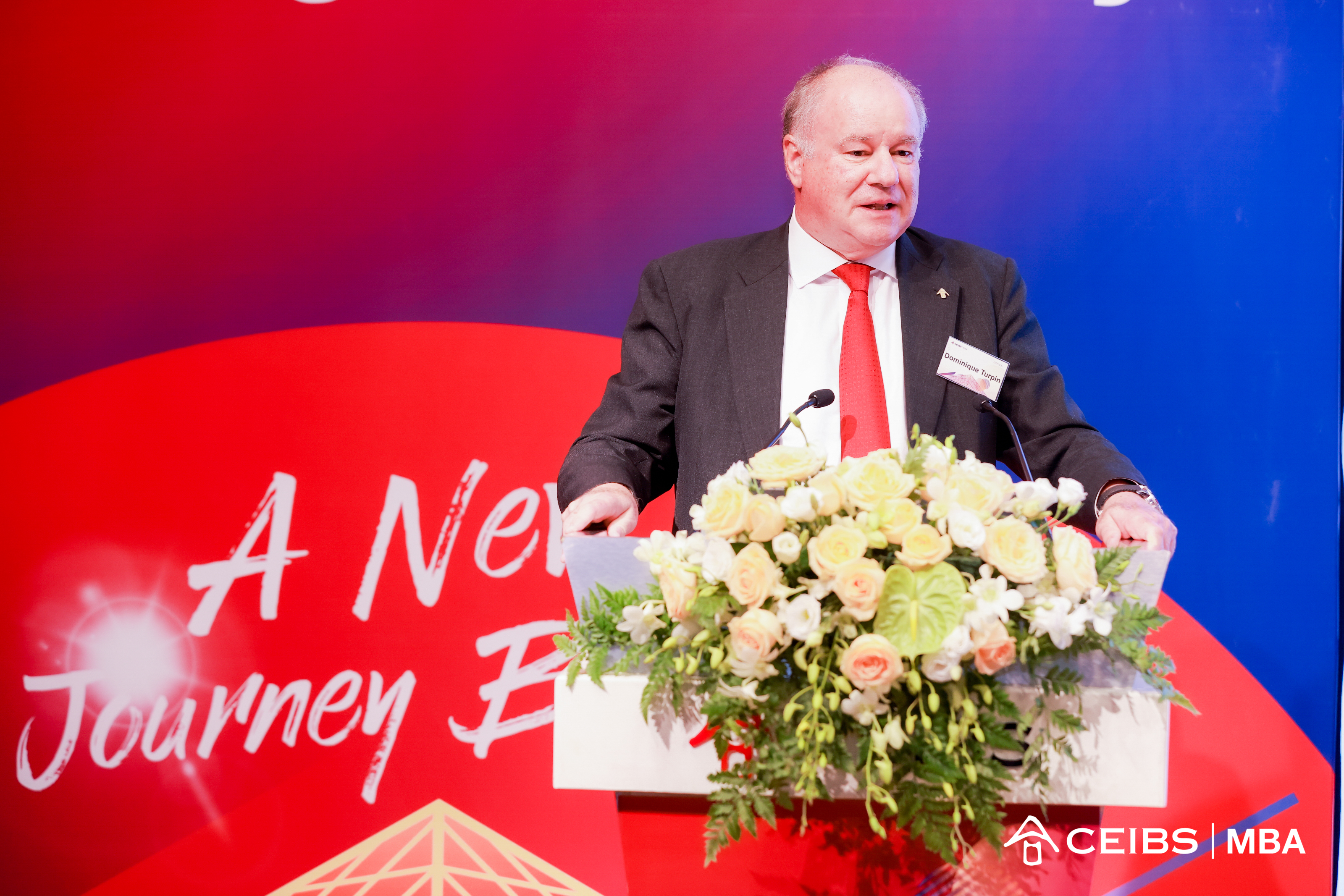 CEIBS President (European) Dominique Turpin speaks in a pre-recorded message during the MBA Class of 2025 Opening Ceremony