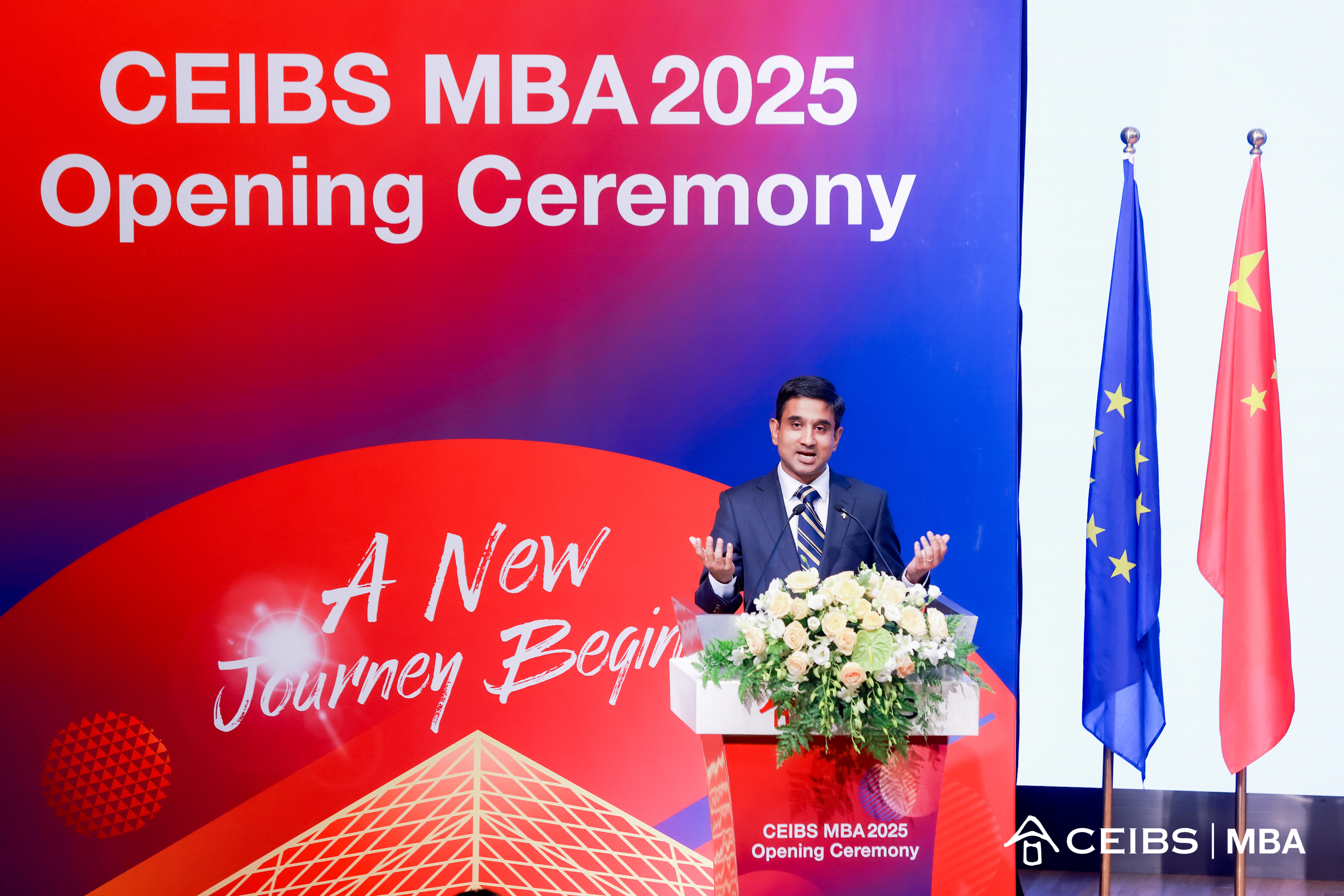 CEIBS MBA Programme Director and Professor of International Business and Strategy Shameen Prashantham gives some final remarks during the MBA Class of 2025 Opening Ceremony