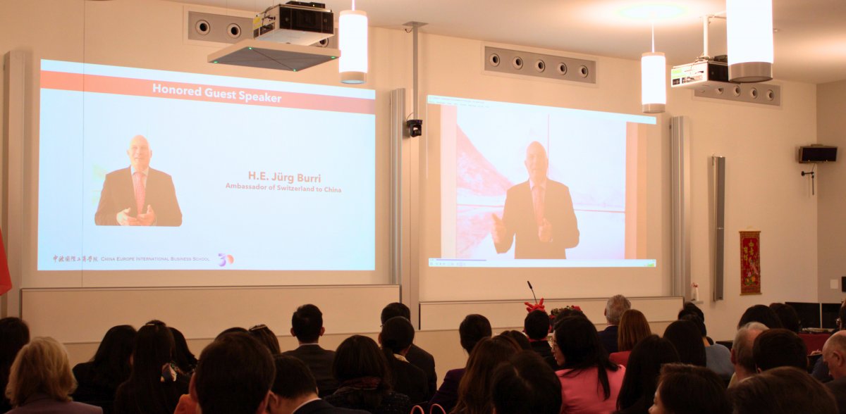 His Excellency Jürg Burri, Swiss Ambassador to China, sent a special video welcome message to the event, highlighting positive prospects for Swiss-Chinese relations, underscoring CEIBS' pivotal role in fostering closer Sino-European ties and bringing European management expertise to China. In his message, Ambassador Burri extended his best wishes on the "double celebration" of the Chinese New Year of the Dragon and CEIBS’ 30th anniversary, acknowledging CEIBS for bringing European management expertise to China and highlighting its role in fostering closer Sino-Swiss ties. "On one hand, CEIBS brings European management know-how and practices to China," Ambassador Burri said. “On the other hand, it also offers western executives the chance to gain an in-depth understanding of doing business in China.”