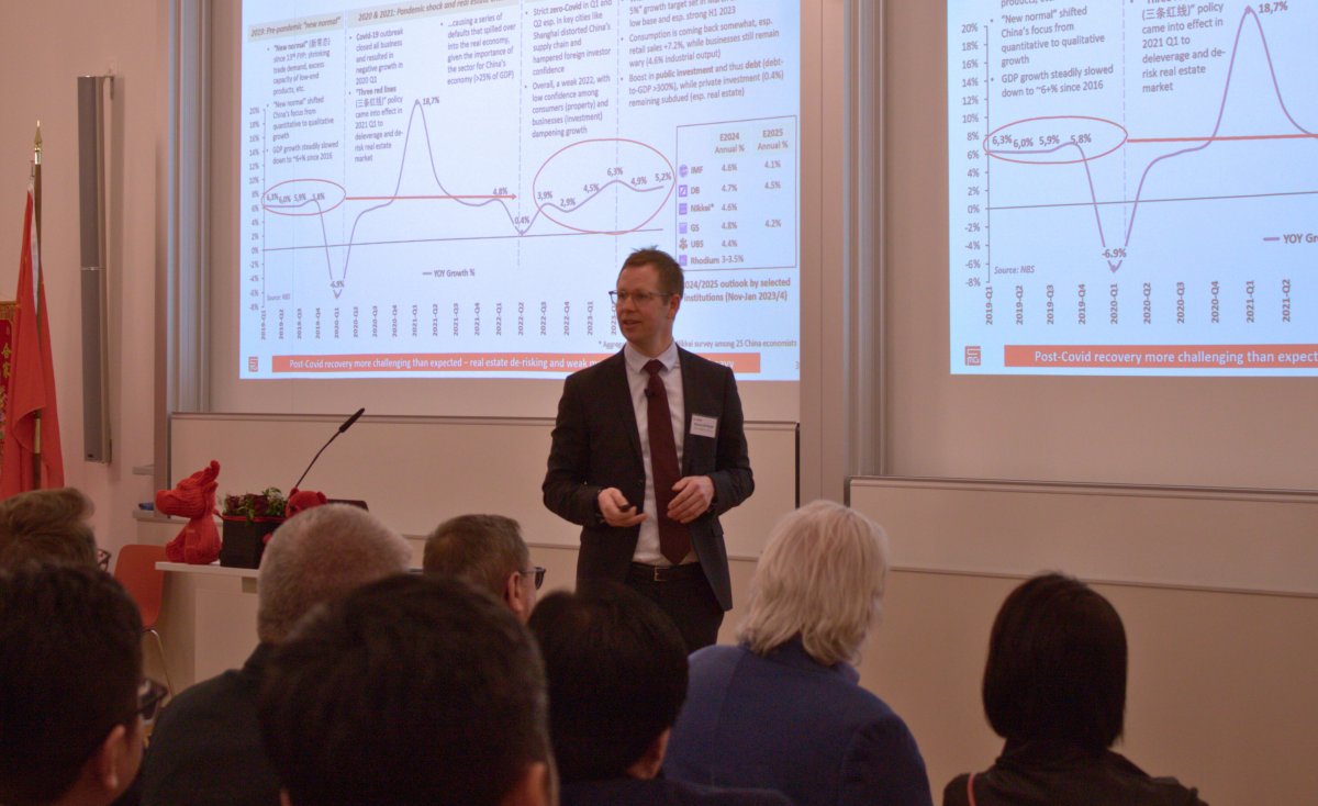 Mr. Michael Settelen, Senior Consultant from China Marco Group (CMG), then delivered a compelling keynote speech. His address explored China's evolving political economy, current economic policies, growth strategies, and European business sentiment.
