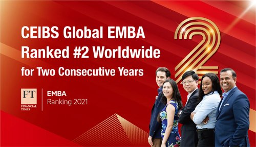 - 2021-10-18October 18, 2021. Shanghai – CEIBS’ status as a world-class business school was underlined today as its Global EMBA programme placed second in the Financial Times’ 2021 EMBA ranking. This is the second consecutive year CEIBS has been ranked #2 and the fourth consecutive year it has appeared in the…
